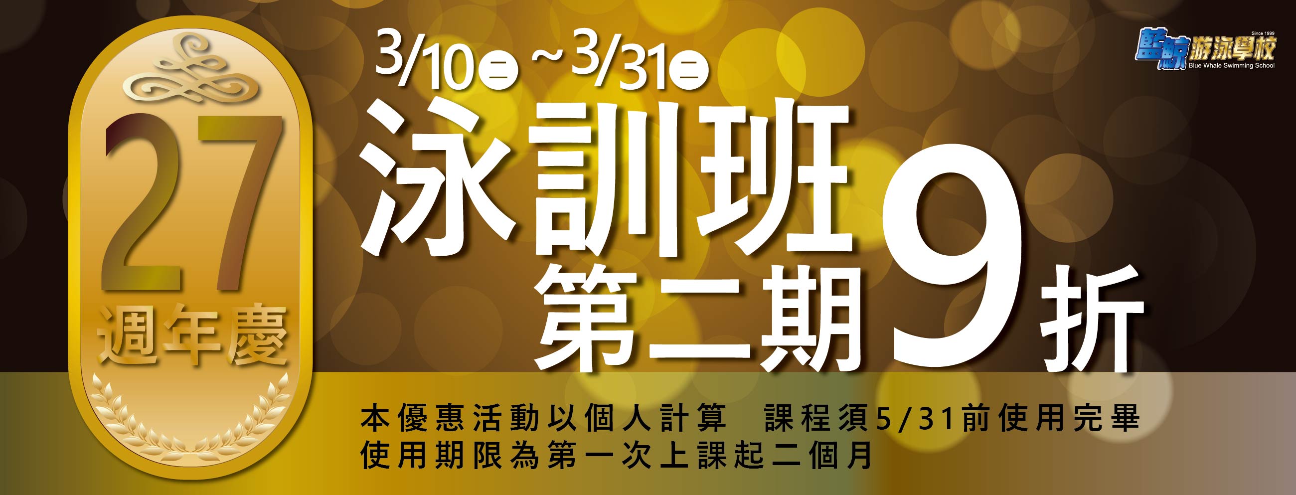 藍鯨27周年慶,泳訓班優惠活動中!